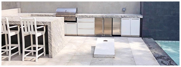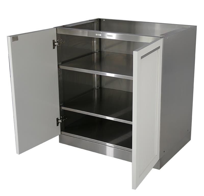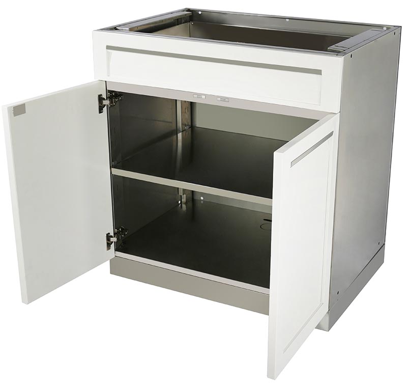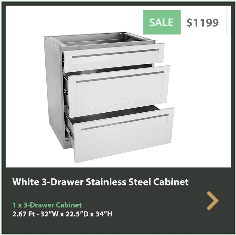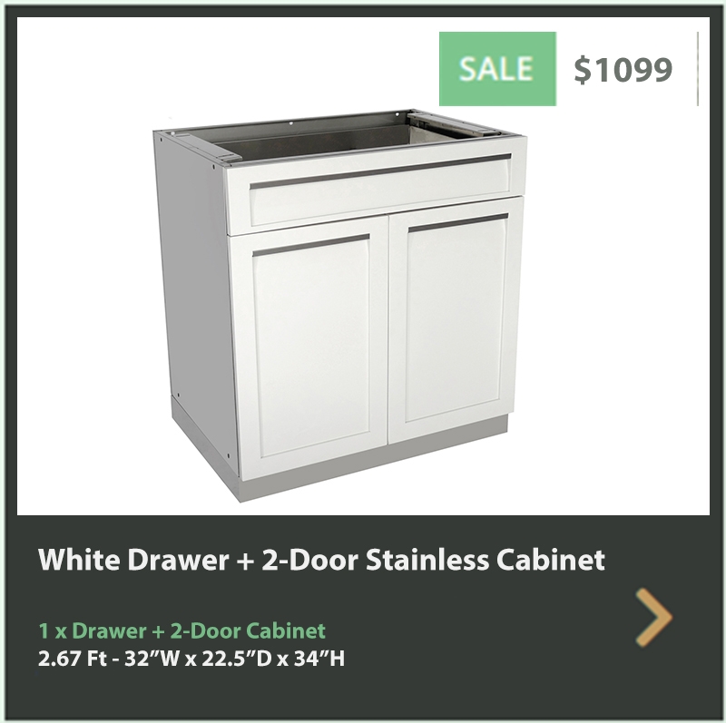 Thank you for exploring our white modular stainless steel outdoor kitchen cabinets. Each cabinet is made from 304 stainless steel and is delivered to your home fully assembled. Each cabinet uses the best powder coat to further protect the thick gauge stainless steel cabinet doors and drawers. Our weather-resistant cabinets will allow you and your family to enjoy the outside as much as the family enjoys the indoor kitchen.